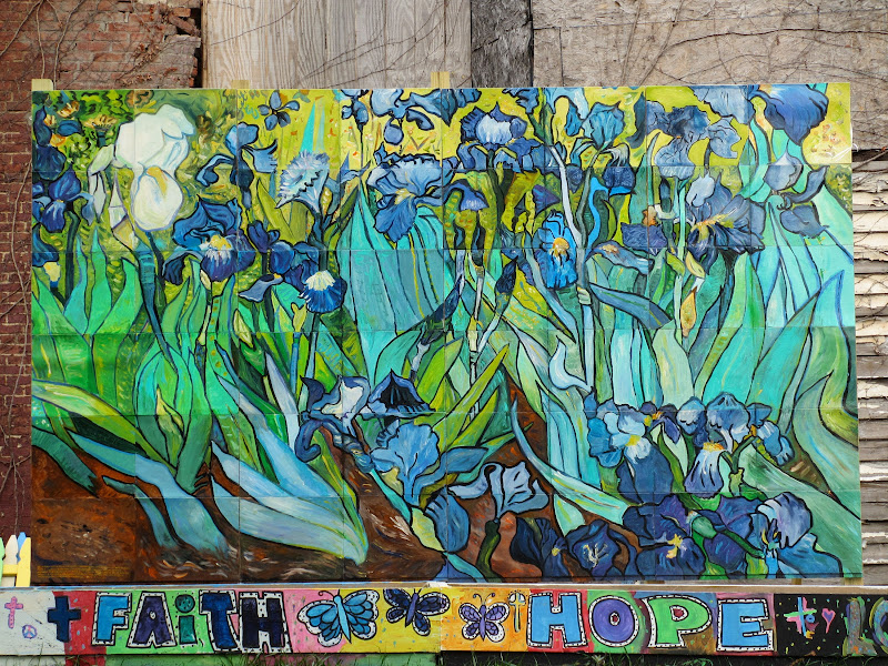 Faith, Hope and Love. Those are the messages tied to Seeking Joy, a mural inspired and modeled after Les Iris by Van Gogh. This mural was done by the students of the Holy Family Institute’s Cathy Pelusi Art Studio and donated to Common Ministries on Brighton Road.