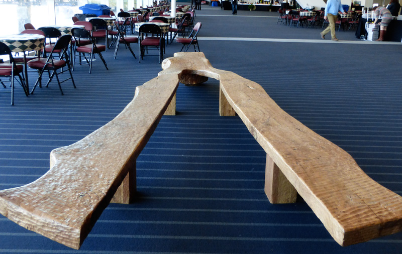 While not outside where you can bike to it or view it without paying an admission fee, Thaddeus Mosley has another piece of artwork on display locally that you might see if you visit the Convention Center. We thought we’d include it here. Three Rivers Bench is carved from black walnut and can be found on the second floor.